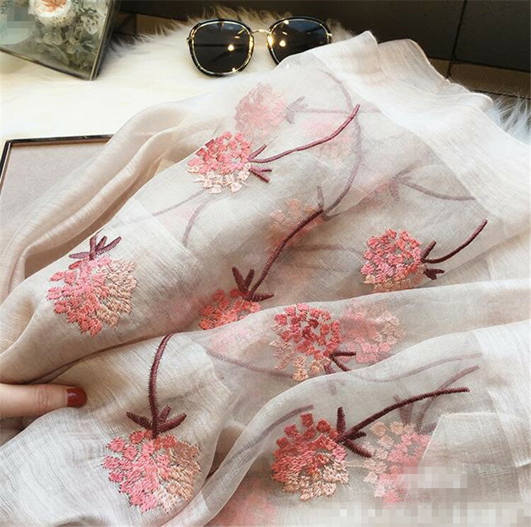 シルク トレンド スカーフ ロングセクション ストール 刺繍 ママ(T)