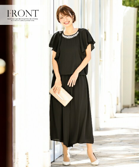 大きいサイズ LL-6L ビジュー付ワイドパンツ セットアップドレス ニッセン 結婚式・二次会・お呼ばれ nissen 黒 カラー 黒 サイズ LL/3L/4L/5L/6L 備考 ※単位:cm※商品サイズは、仕上がりサイズです。
