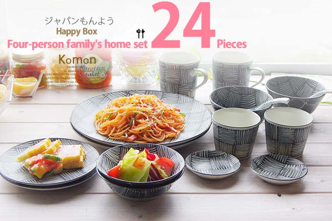 【あす楽対応】和食器 ジャパンもんよう komon いちまつ 市松 24個 福袋 2人家族のホームセット おうち うつわ 食器 陶器 美濃焼