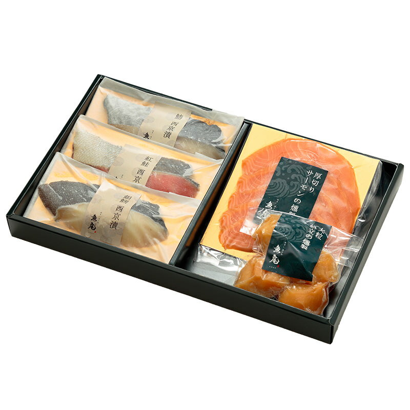 【こだわり厳選素材の旨みを最大限に引き出した逸品を詰め合わせ】魚に本気の職人が丁寧に仕込んだ燻製と西京漬のセットです。