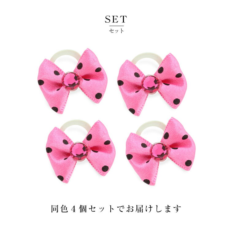 犬用 リボン ヘアゴム 水玉 ドット【同色4個セット】チワワ ダックス トイプードル 小型犬 ヘアアクセサリー 犬用アクセサリー メール便配送