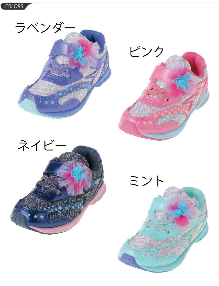 キッズシューズ 瞬足レモンパイ 女の子 シュンソク 子供靴 通園 通学 瞬足マラソン 花柄 星柄 かわいい /15〜19cm/LEC2620/